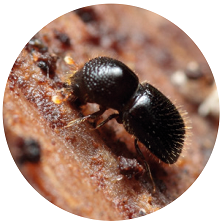 - Sa relation symbiotique avec des champignons des genres Fusarium, Graphium y Paracremonium lui confère une très grande polyphagie, ce qui lui permet d'attaquer près de 500 espèces et de se reproduire à l'intérieur de 80 espèces végétales.